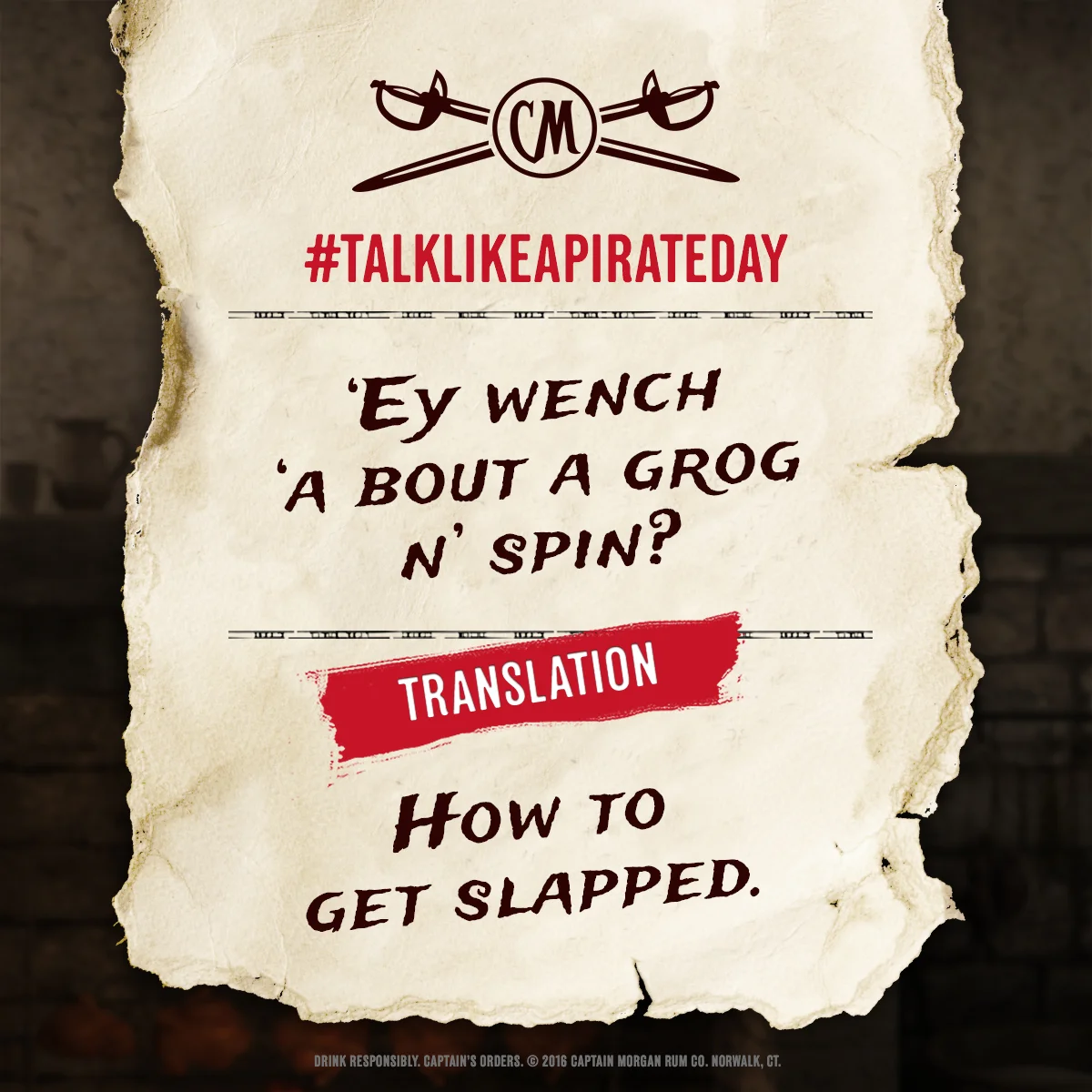 Captain Morgan wanted to capitalize on the "holiday" made popular on Facebook — Talk Like A Pirate Day. In order to help our fans participate, we wanted to give them some phrases to get started.