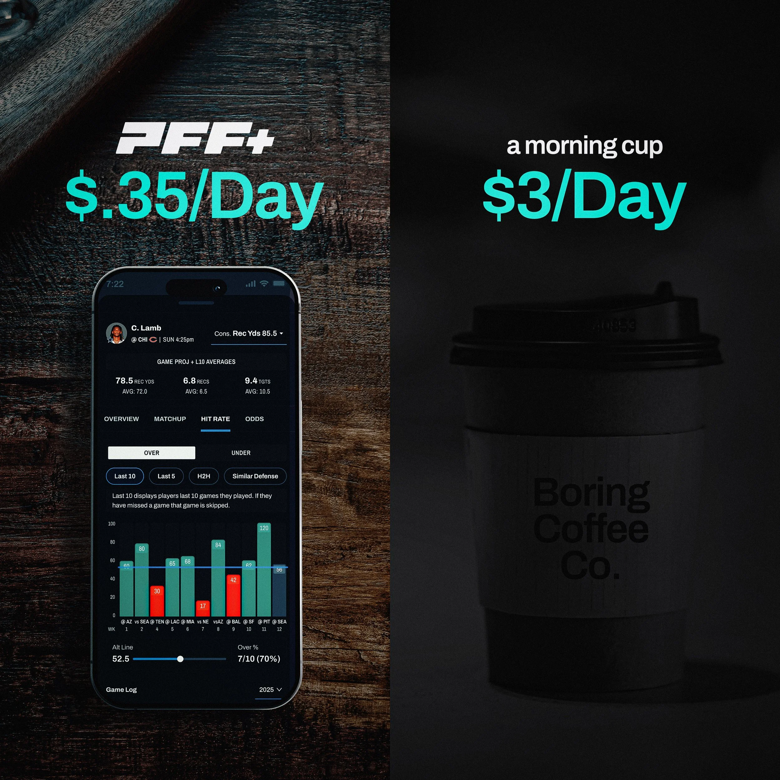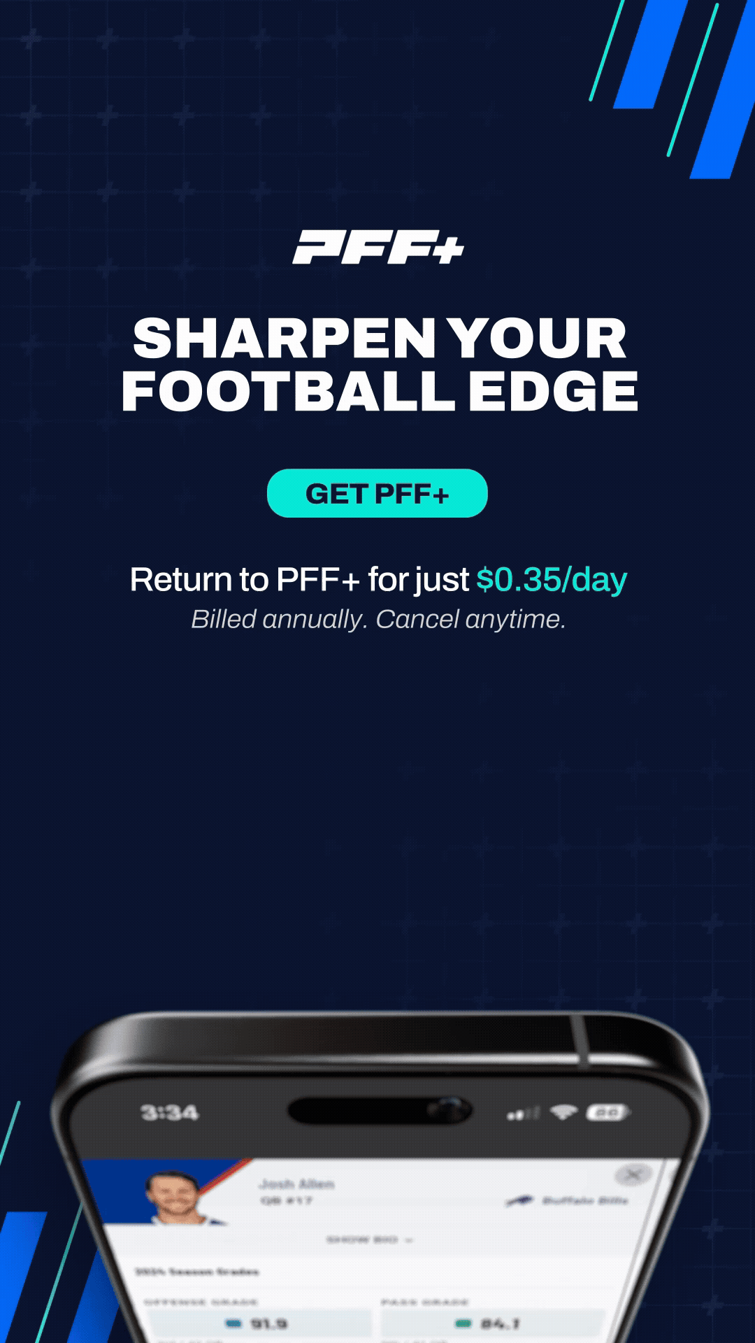 PFF created a series of digital ads for rotating use across paid media. Ads spanned across prospecting, targeting and retargeting for the PFF app, which includes both betting and fantasy tools.